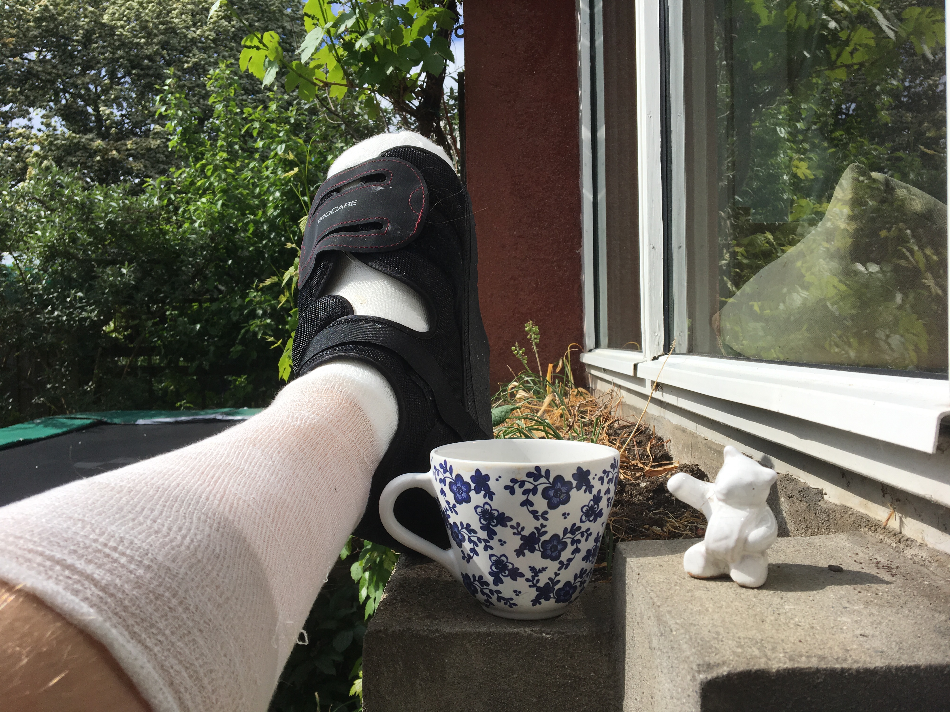 Onsdag d. 22 maj klokken 08:15 om morgenen, havde jeg ved nørdet selvsyn kunnet konstatere, hvorledes at fodkirurgen Michael, med et arsenal af skarpe sterile instrumenter og en ihærdighed som en haute couture skrædder, var gået forholdsvis hårdt til en stortå, som jeg ville forsværge ikke var min egen, fordi at den var så pokkers godt bedøvet.
