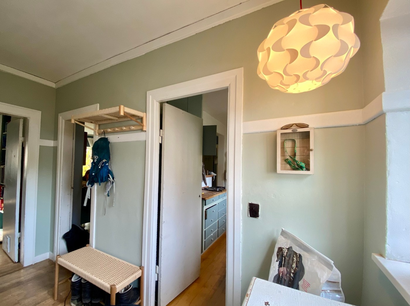 Der findes ingen fotos af vores entré som den tog sig ud før jeg her i efterårsferien malede den lysegrøn (som håbet) og i det hele taget bare underkastede den en kærlig renovering.